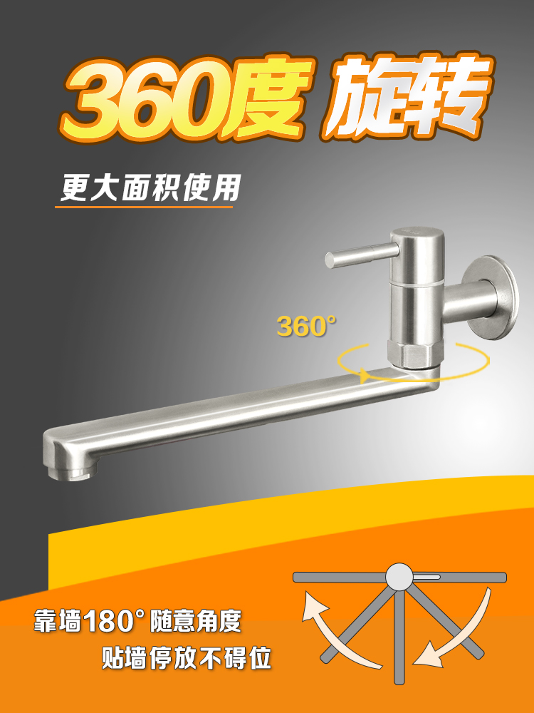 Kitchen in-wall faucet stainless steel lengthened single cold wash basin wash basin sink balcony rotatable home