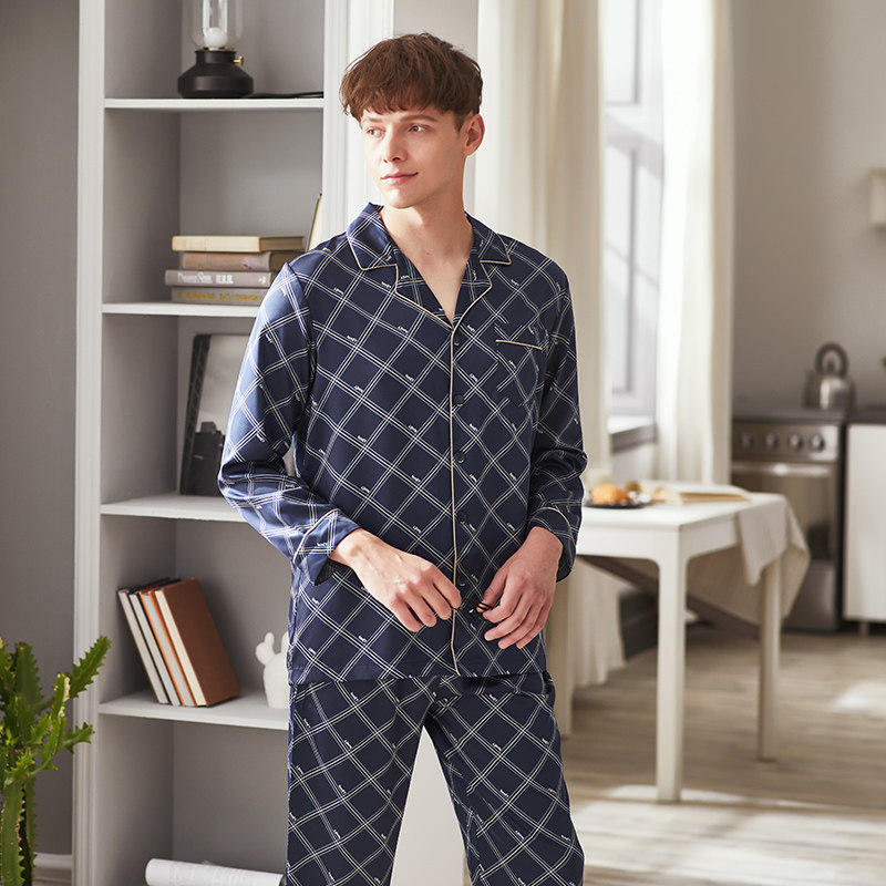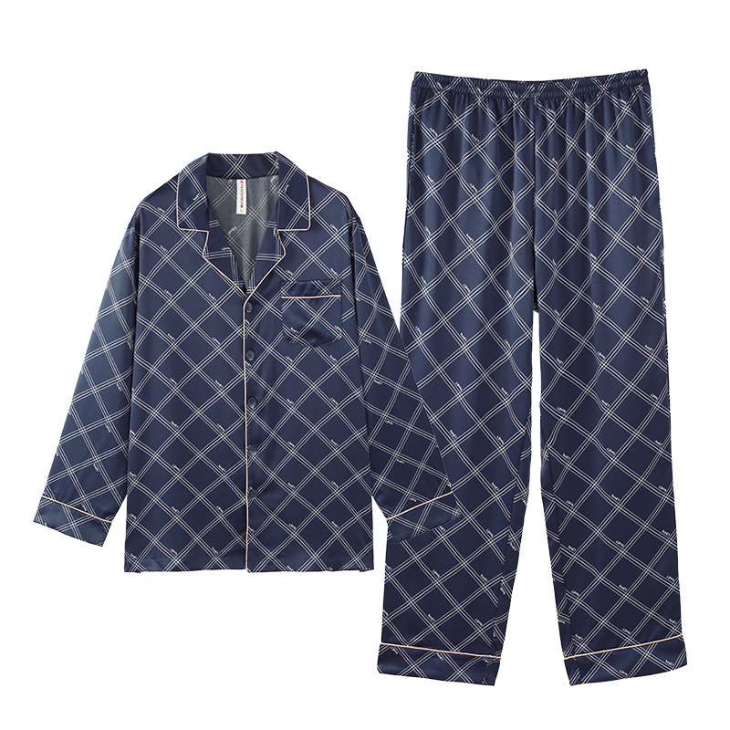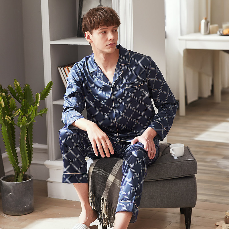 Fenten Ice Silk Sleepwear Male Spring Summer Long Sleeve Open-Shirt Thin-style Imitation Silk Air Conditioning Suit Casual Home Suit