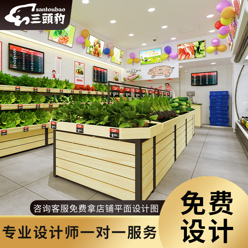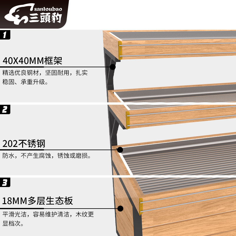 Money Great Moms Vegetable Shelving Shelf Show Thermal Transfer Wood Grain Raw Fresh Supermarket High-end Stainless Steel Fruits And Vegetables Rack Set