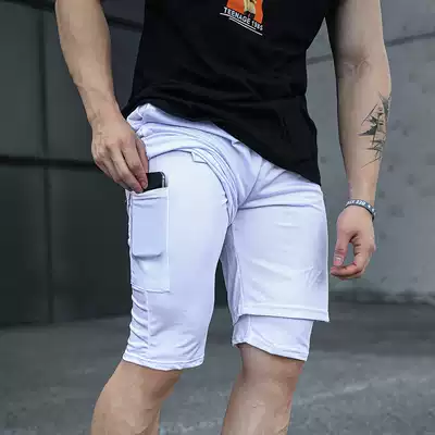 Summer leisure sweatpants new breathable trend big size fake running fitness football training shorts men