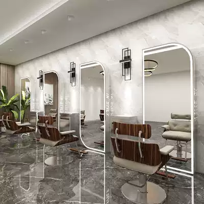 High-end net celebrity hair salon mirror table Hair salon hair salon special single and double-sided mirror LED floor-to-ceiling mirror with lamp vertical