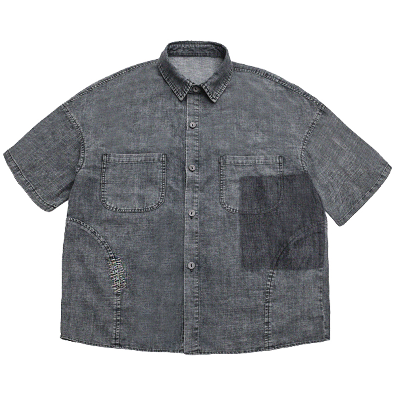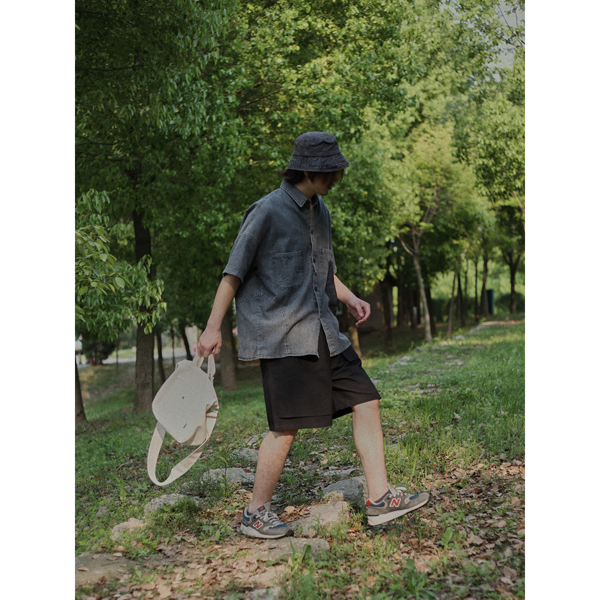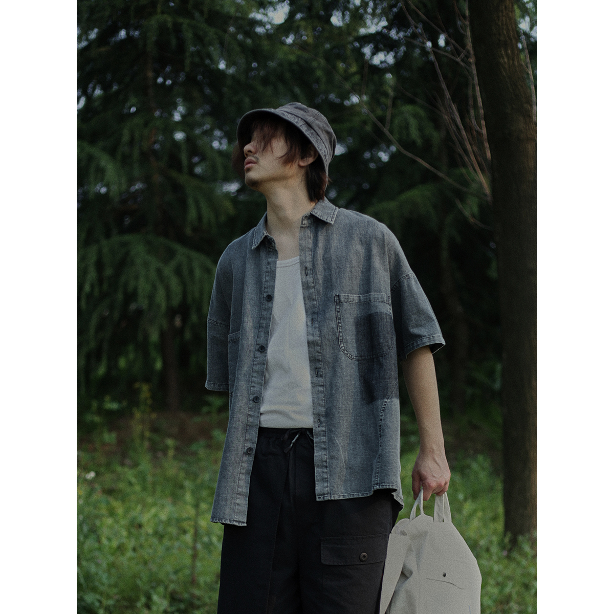 Crisis Youth Summer Men's Shirt Short Sleeves Easy Water Wash for old casual trendy retro T-shirt Half sleeve jacket