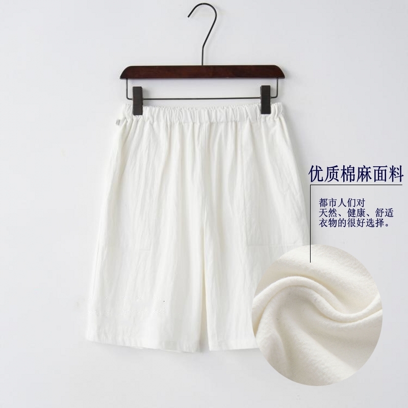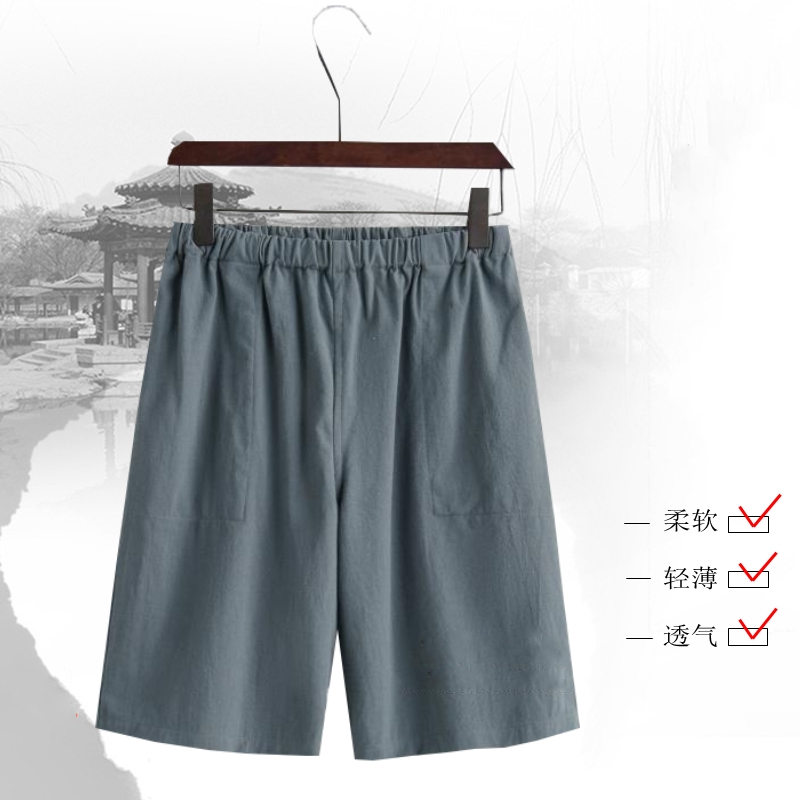 Chinese style linen shorts men's summer casual five-point pants Chinese style cotton and linen elastic waist outer wear pants home casual shorts