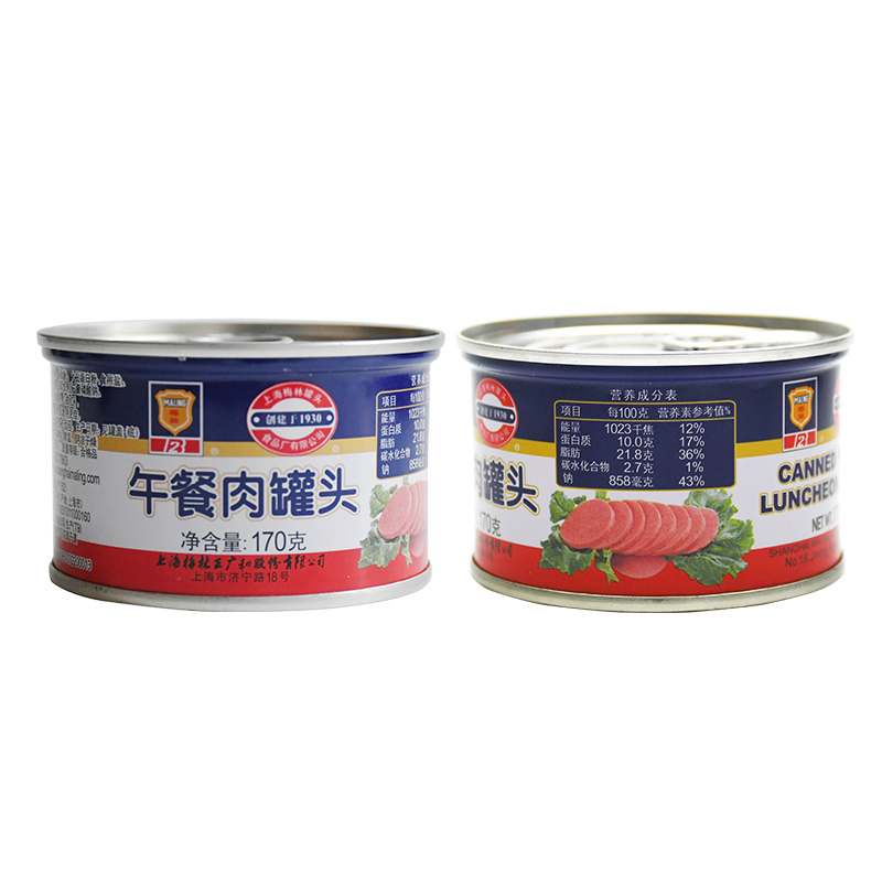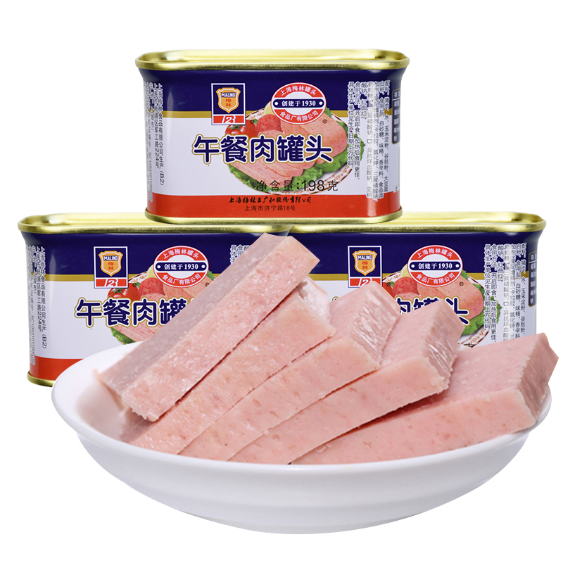 Shanghai Merlin luncheon meat canned 198g 340g Ready-to-eat cooked food ham pork self-heating hot pot ingredients