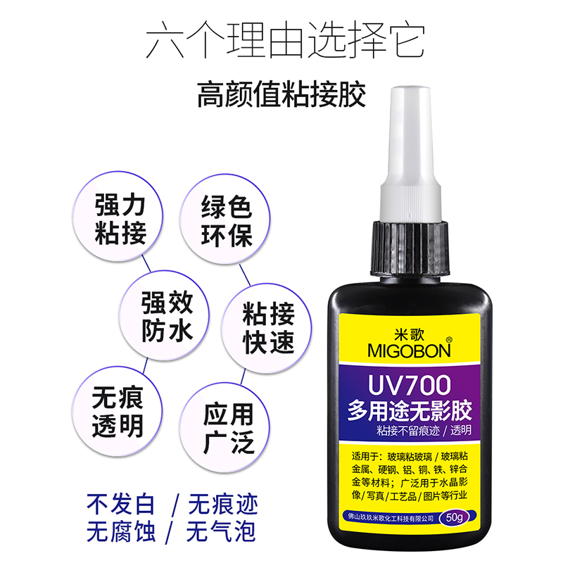 Mige UV700 shadowless adhesive Tempered glass coffee table Metal crystal decorative chandelier Glass trophy UV curing adhesive Transparent acrylic special fast-drying strong non-trace glue