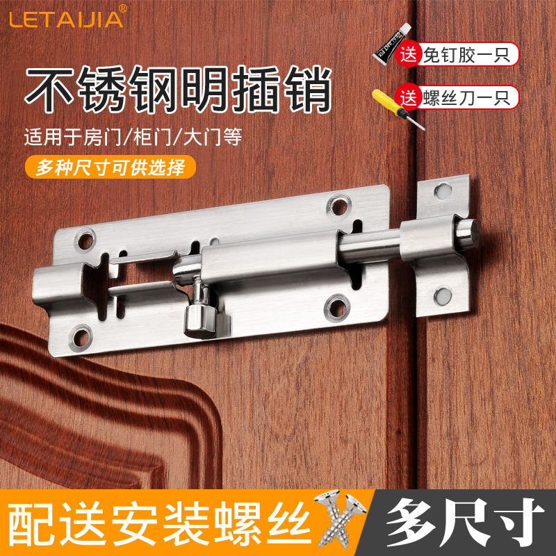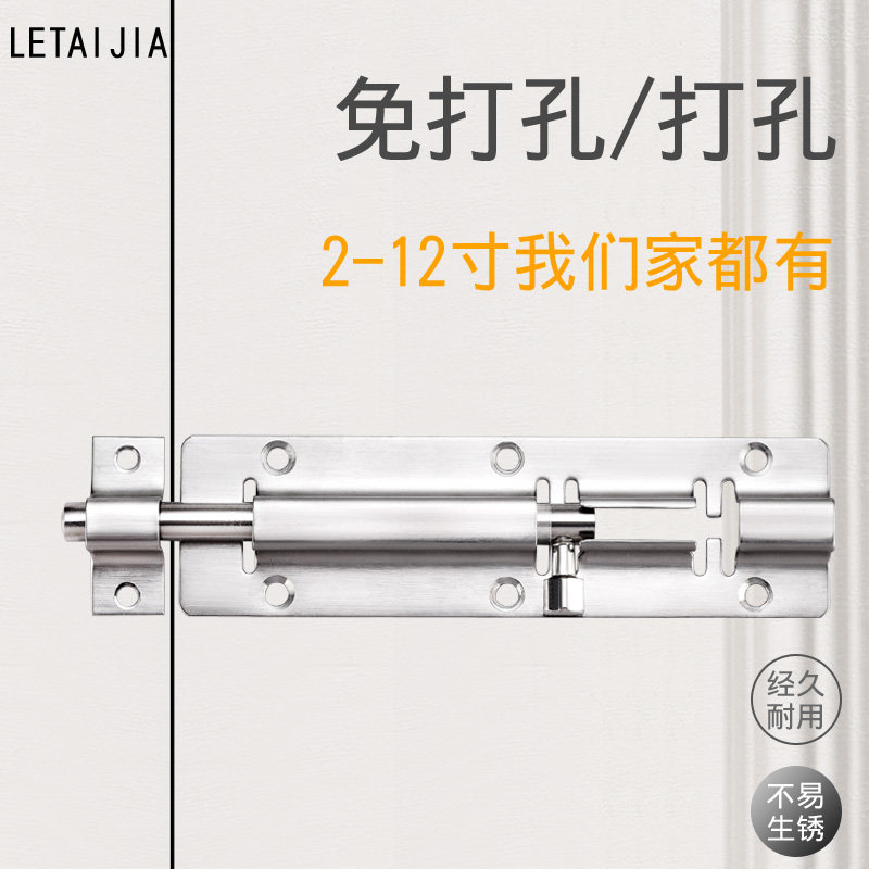 Punch-free stainless steel clear bolt door buttoned door bolt wooden door security door latch door latch door latch dressing room old fashioned door pin