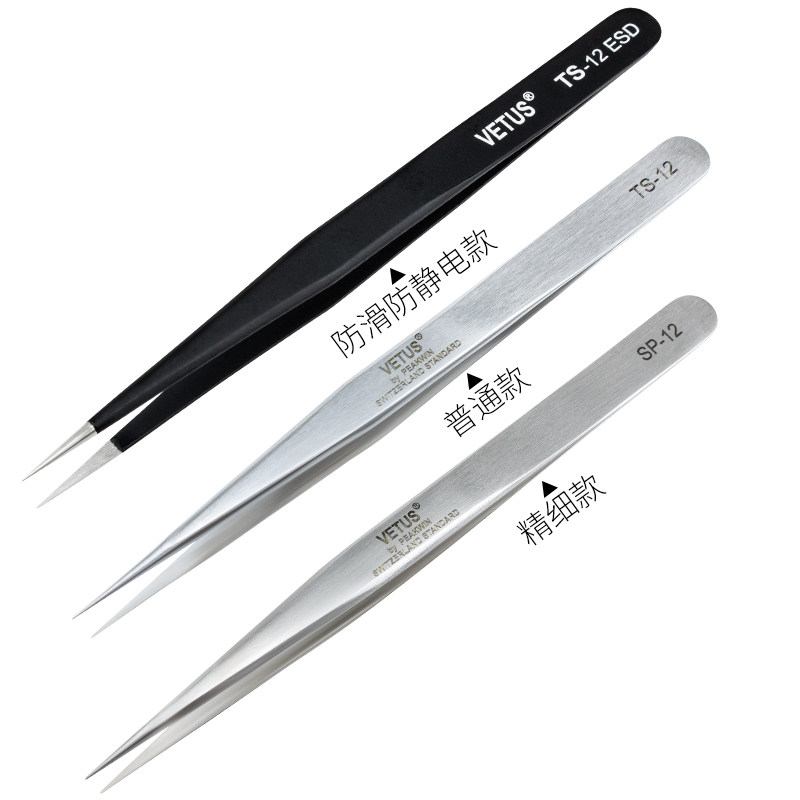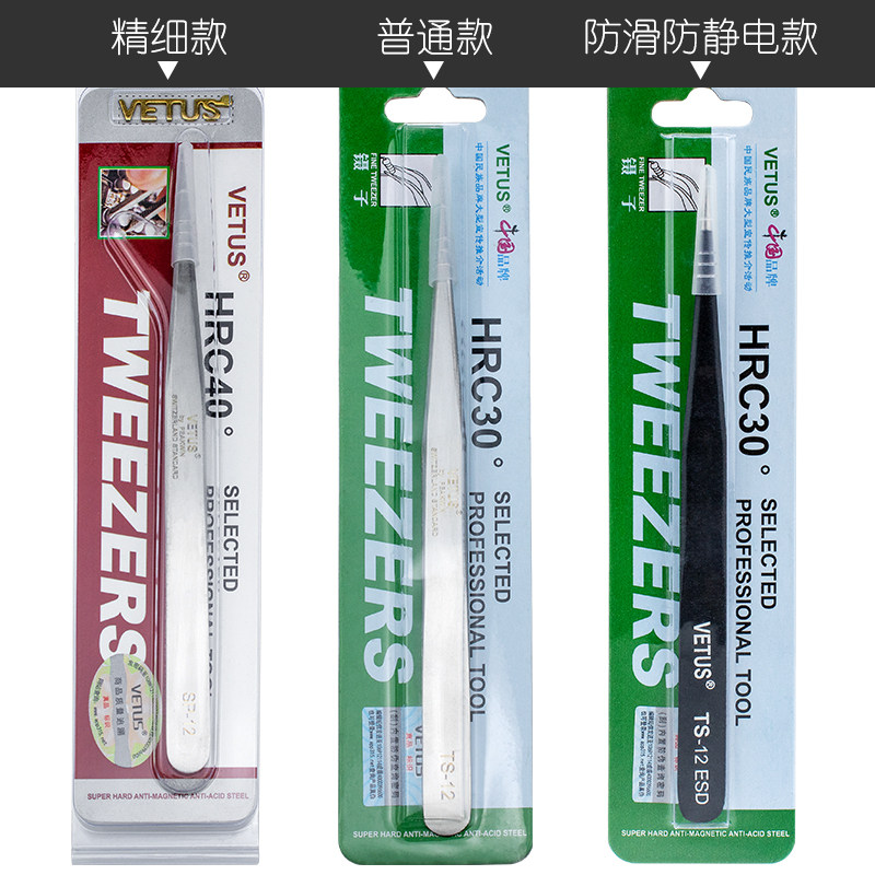 Precision stainless steel tweezers industrial-grade electronic maintenance tool clip bird's nest hair manual paste drill non-magnetic tip thin straight head