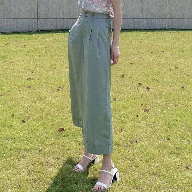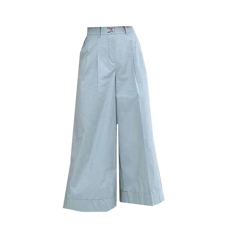 Pingbrother New 2023 summer with a thin and simple official website high waist nine - deck trousers cotton loose broad leg pants