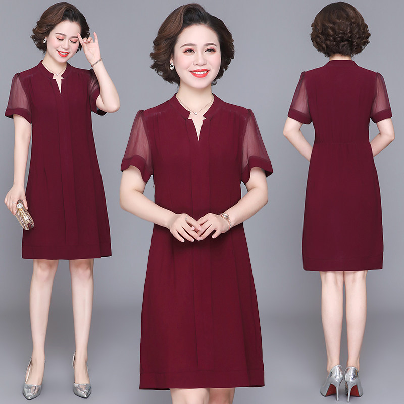 Fat Mom Summer Clothing Foreign Dress With Long Version Gats Up Overweight Middle Aged Snowspinning Dresses Foreign Pie Middle Aged Women