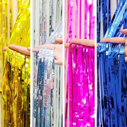 Rain curtain laser jet soda blossom silver birthday party background wall wedding decoration