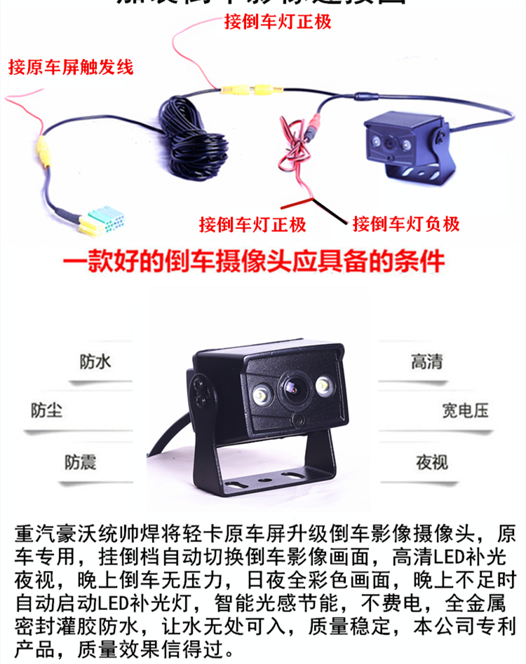 24V HEAVY PETROL HOWO HOWO Humvee The Commander Low Card Original Car Screen Special High-definition Backing Watch Lens Waterproof Night Vision