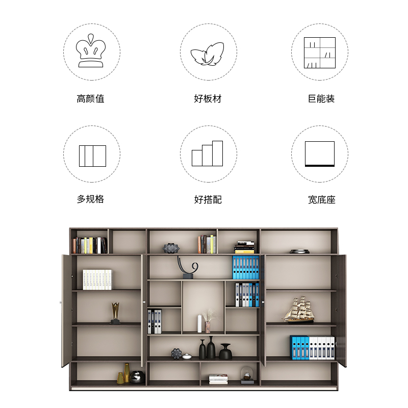 Office floor-to-ceiling bookcase boss file cabinet simple high-end wooden background information cabinet office furniture combination