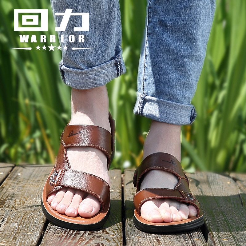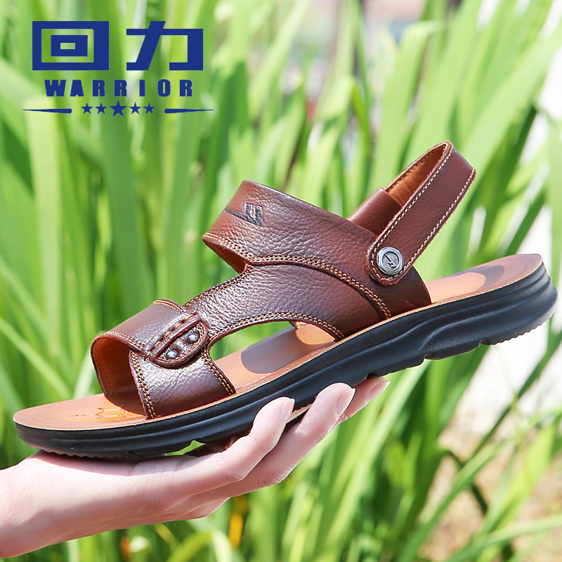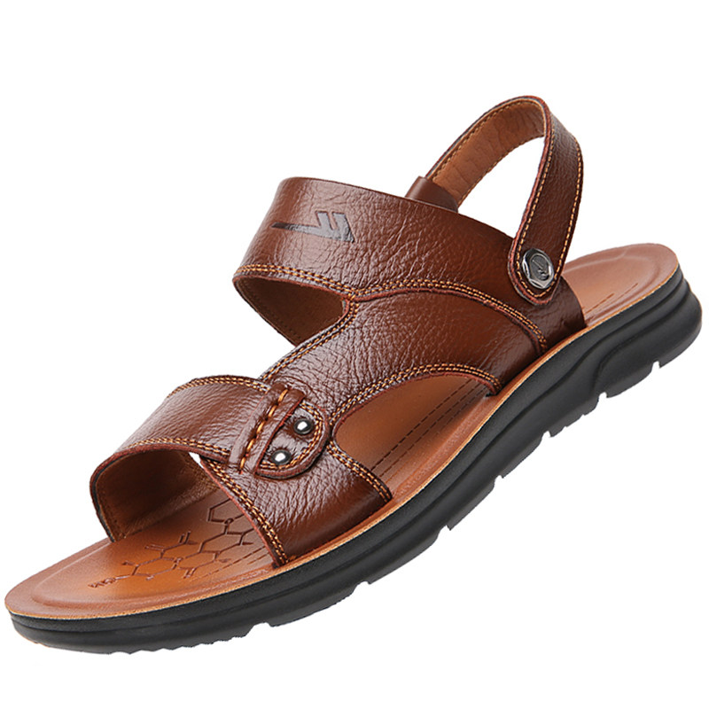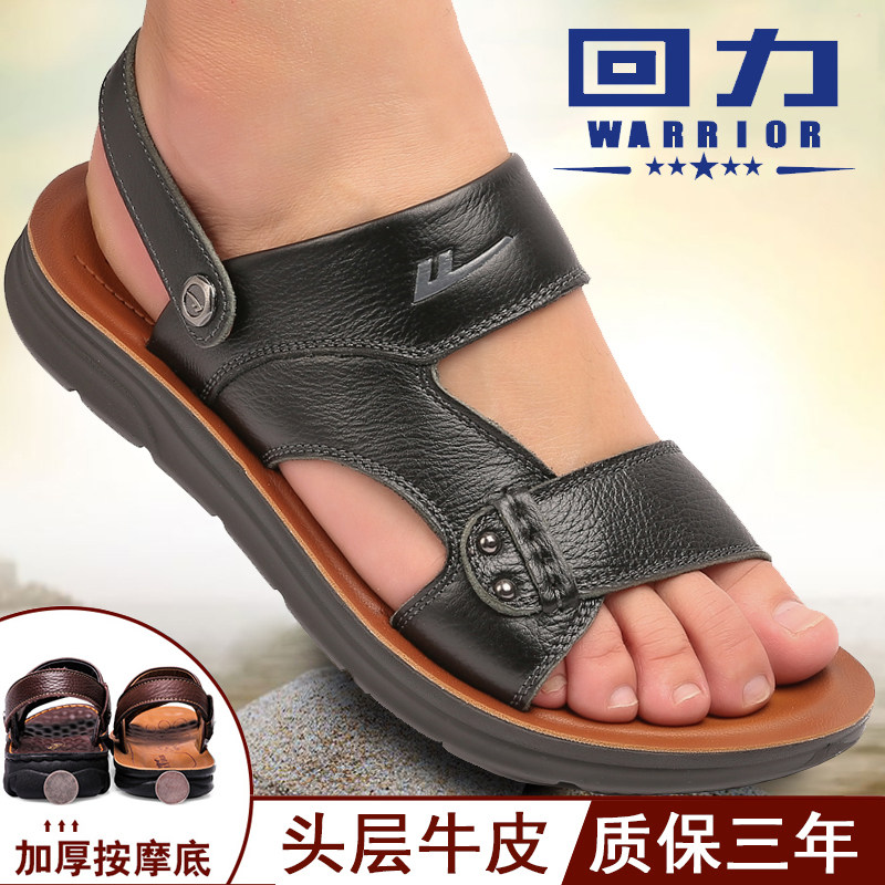 Back Force Sandals Men Genuine Leather Summer Casual Beach Shoes Male soft bottom Dual-use anti-slip Dad cool slipper Male