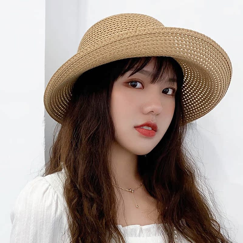 Butterfly knot grass knitted sunhat art 100 lap fisherman hat outdoor beach shade summer thin and casual hat