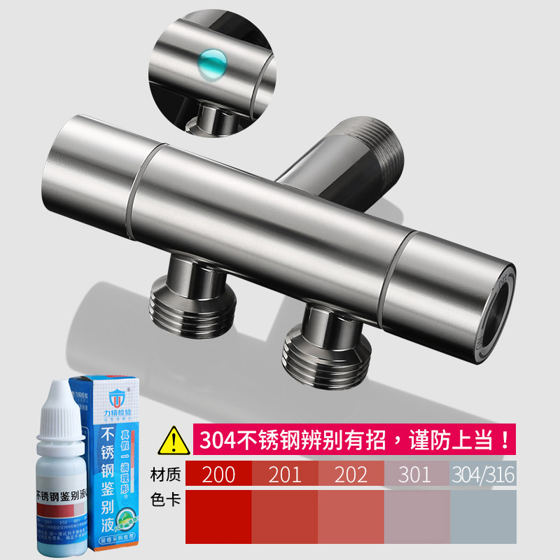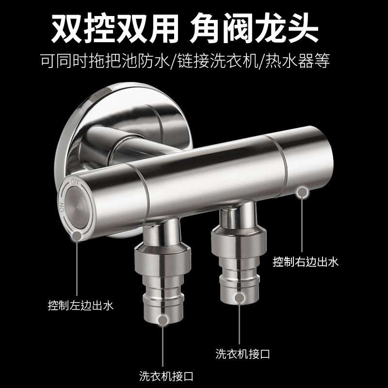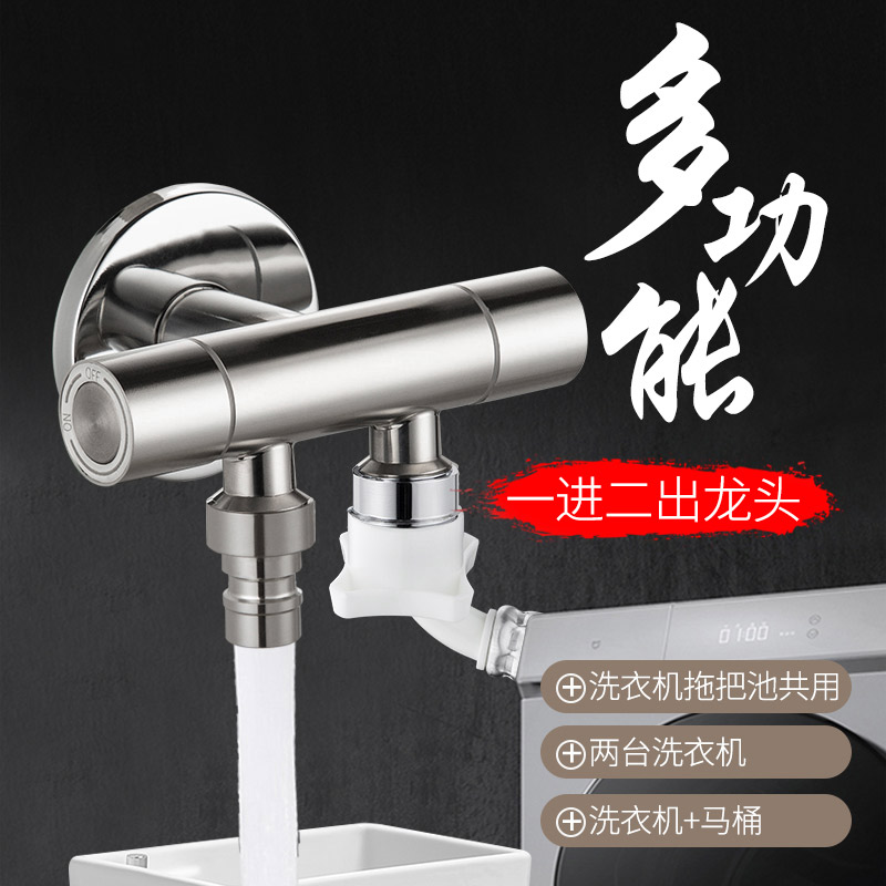 304 stainless steel in-two-out double head washing machine tap connector 4 60% toilet tee angle valve water segregator-Taobao