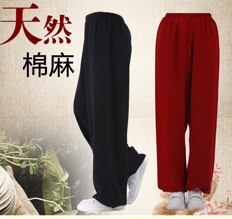 Tai Chi Pants Men's Cotton Linen Martial Arts Practice Pants Women's Summer Middle Aged Large Size Thin style Loose Yoga Light Cage Pants