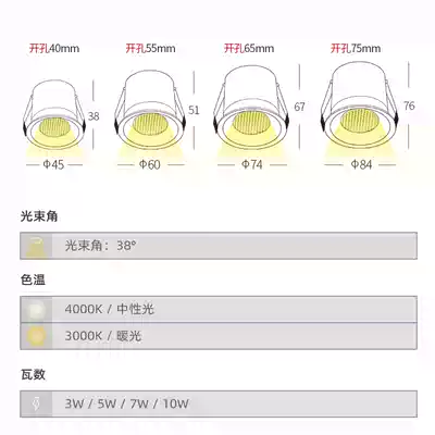 Suni deep anti-glare spotlights Embedded led suspended ceiling ceiling lights 55-75 Living room without main lights Small spotlights