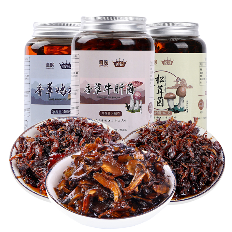 460g bottle of chicken mushroom, 460g bottle of boletus, 460g bottle of matsutake mushroom, 3 bottles of chicken mushroom, 3 bottles of boletus, 3 bottles of matsutake mushroom, chicken mushroom, boletus, matsutake mushroom (