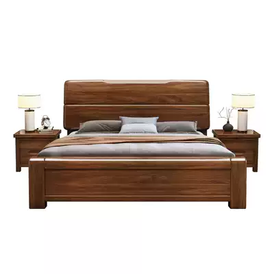 Imported walnut wood bed 1 8 meters double sized bed modern Chinese marital bed 1 5m master high Box storage bed