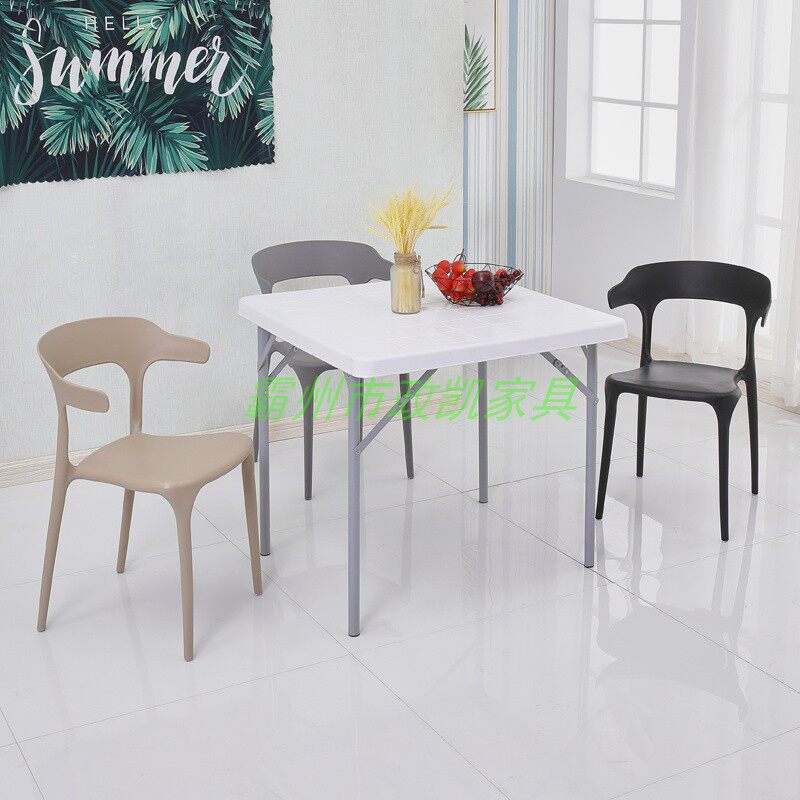 White 80 square table blue 80 square table horn chair thickened version of the horn chair super version of the horn chair export version of the folding square table 2 set unit price