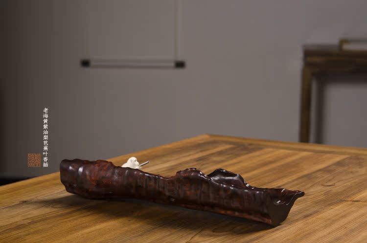 Ziyun Sandalwood House Hainan Huanghuali purple oil pear old material boutique carving banana leaf incense incense Dao incense ornaments