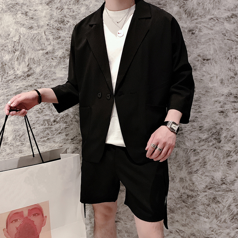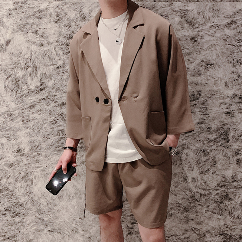 Korean summer short-sleeved suit men's Korean version ins loose mid-sleeve casual small suit shorts two-piece tide