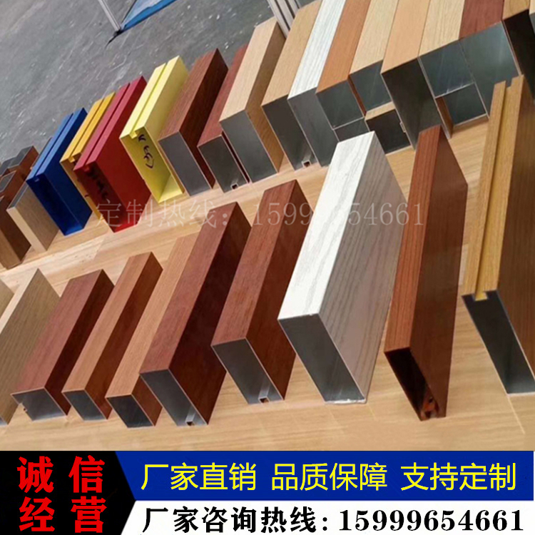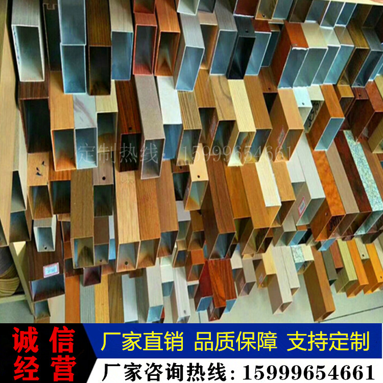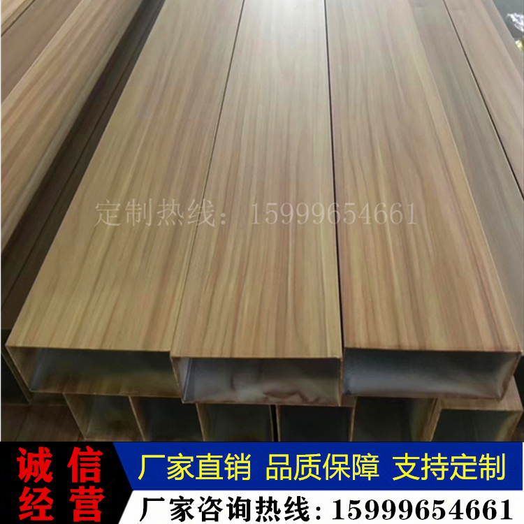 Exterior wall aluminum alloy square pipe curtain wall Coffee color aluminum square pipe wood grain groove type aluminum square wood grain aluminum square pipe screen