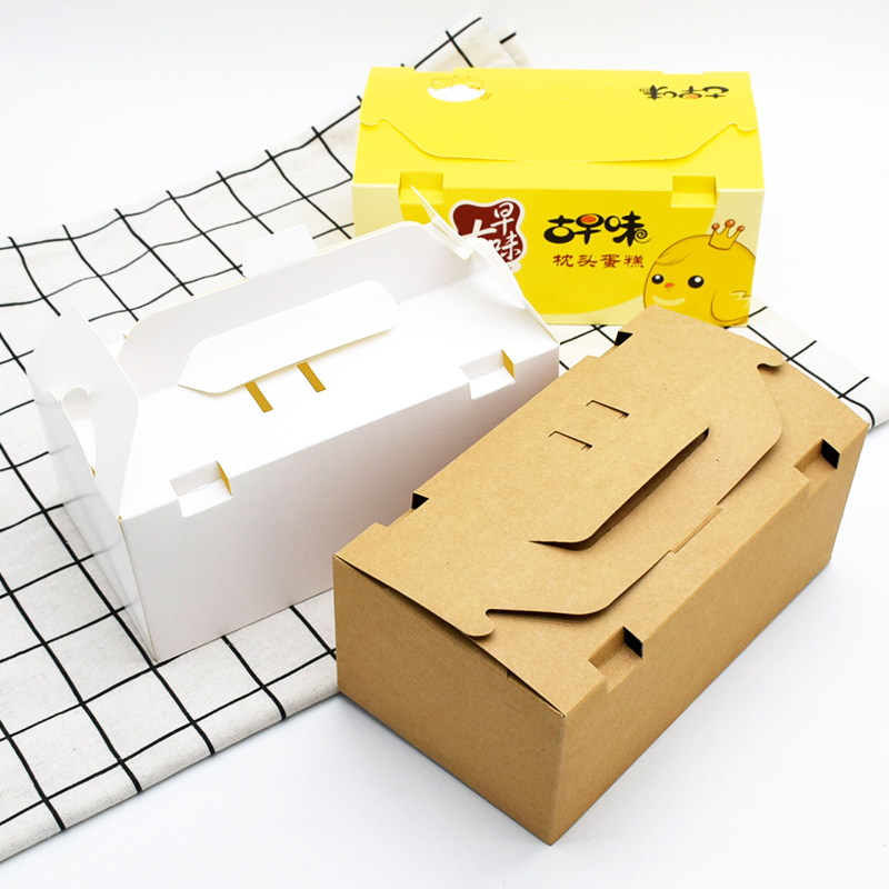 Net Red Ancient Taste Pillow Cake Box Meat Pine Small Bay Hand Baking Kraft Pulp Paper West Point Box Packing 50 sets
