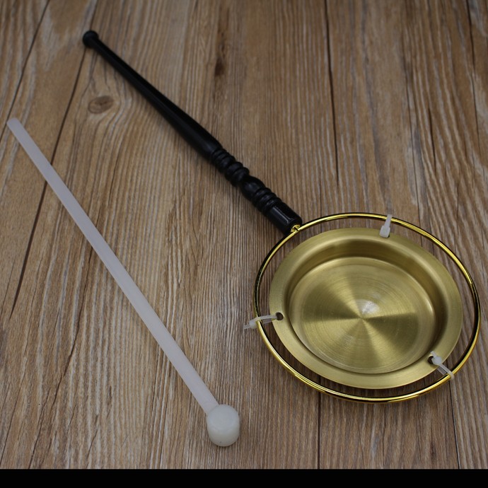 Buddha Supplies Paraphernalia Lace Pan with long handle stall Sub-lead Bronze Chime Stones with Gong Clouds Gong Brass to Celebrate Wooden Fish