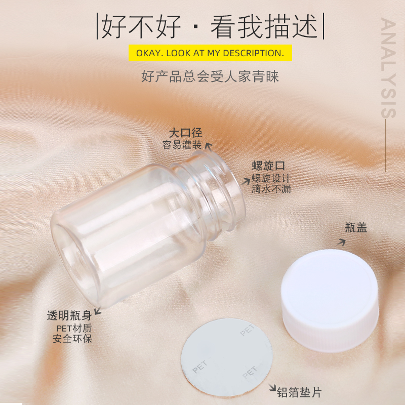 15ml20ml30ml transparent plastic bottle small bottle sub-bottled small medicine bottle liquid with cap sealed sample bottle