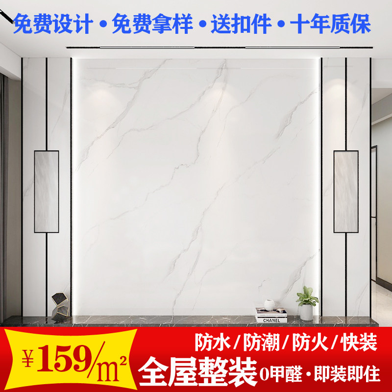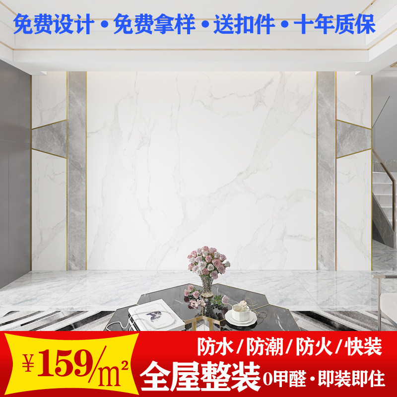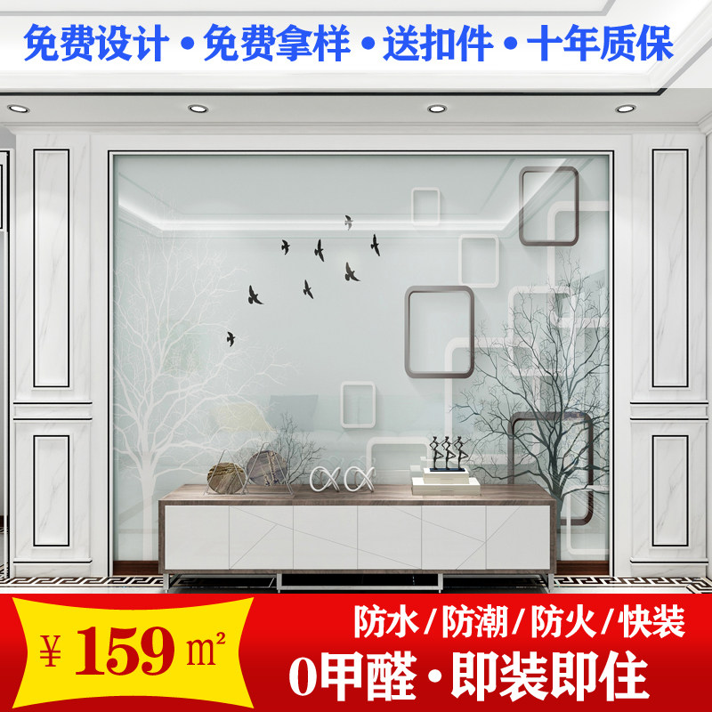Customized bamboo wood fiber integrated wall panel New Chinese style brief TV background wall 8D rugged integrated wall