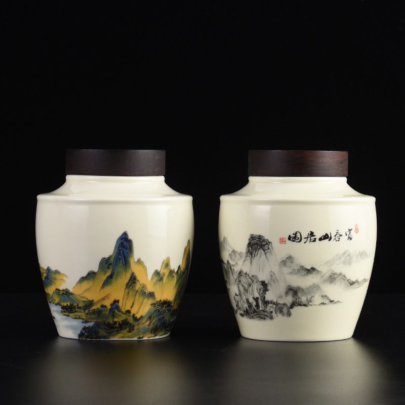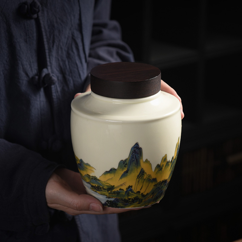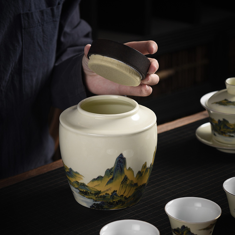 Chinese ceramic tea leaf jars wood cover Forbidden City thousands of miles from the Palace Museum of Tea Green Tea Large Seal Storage Tank of tea Set Storage Tanks