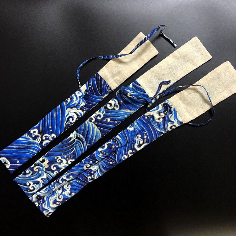 The Cuff is 7 inches 8 inches with a fan bag cotton linen Buffy floral emblared blue protective bag fan set