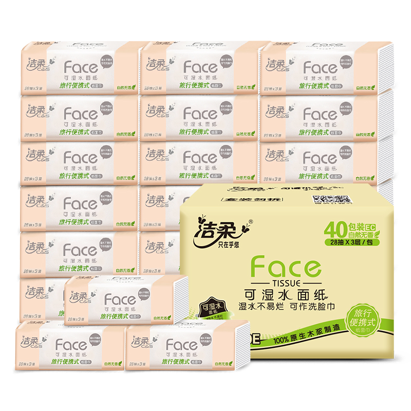 Clean soft tissue bag Non-fragrant travel portable removable toilet paper 28 pumping full box batch 40 packs of facial tissue car napkin
