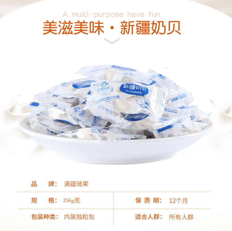 Manjiang Qiguo Xinjiang milk shellfish 256g original dried milk flakes candy Net Red snacks independent train with the same