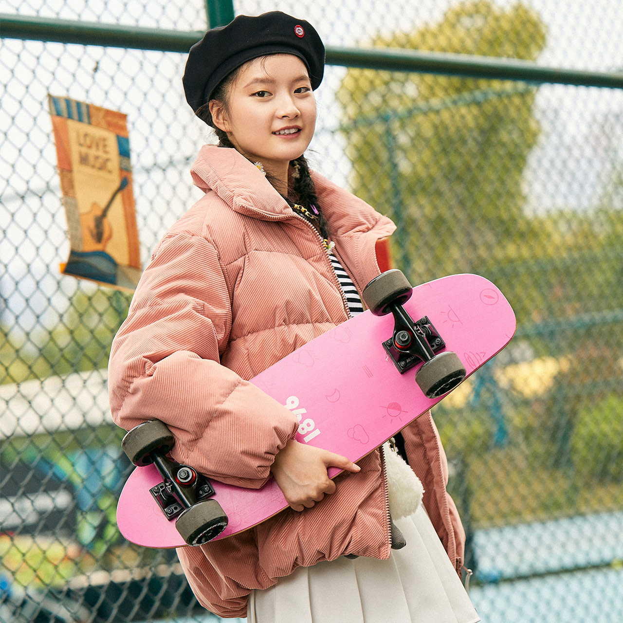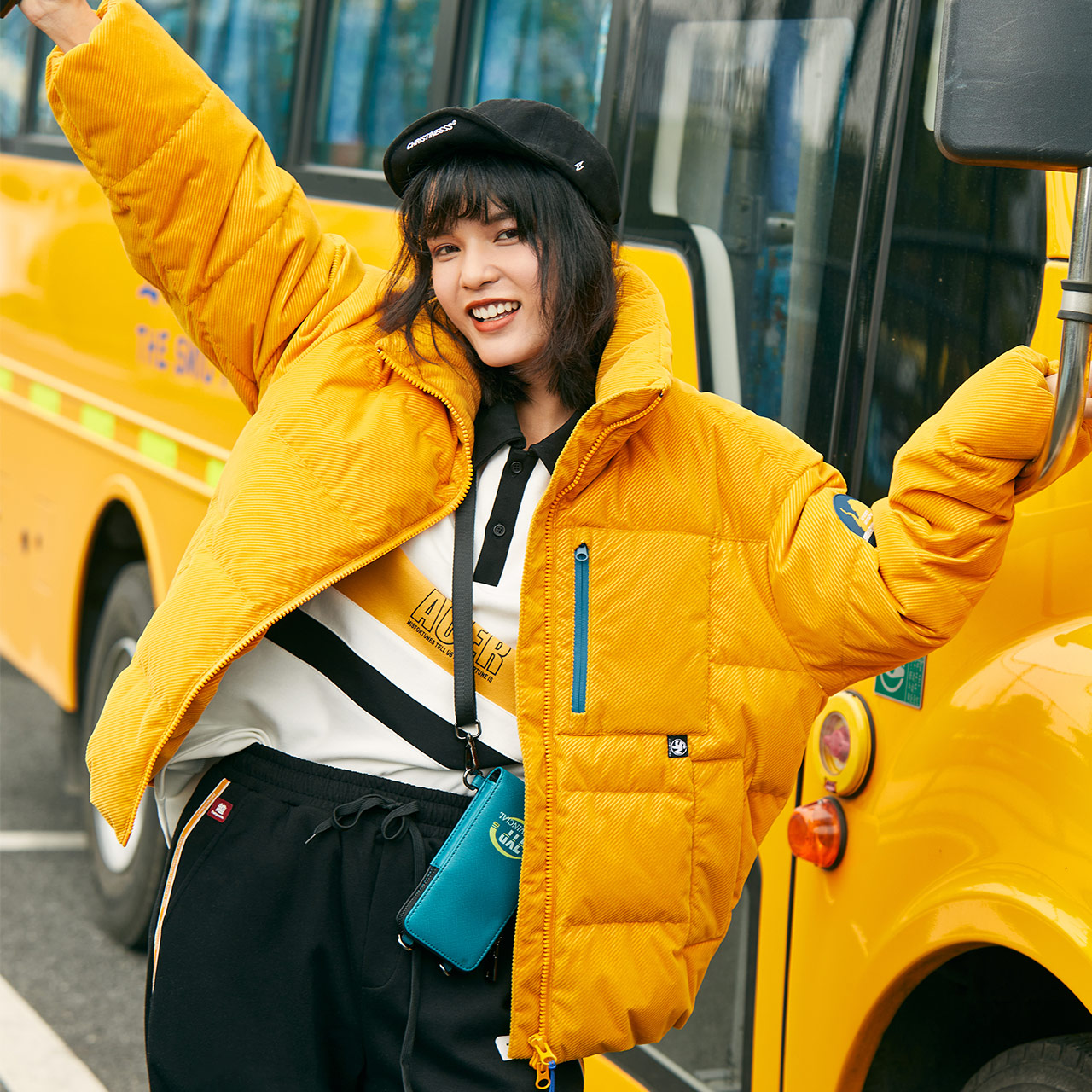 Flying in the Snow 2022 Autumn/Winter Corduroy Contrast Color Personality Ladies Stand Collar Trend Fashion Short Down Jacket
