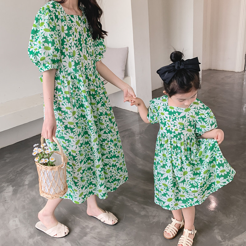 Parent-child dress, mother-daughter dress, western style summer dress, puff sleeve skirt 2021 new Sanya photoshoot, forest sweet dress