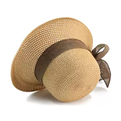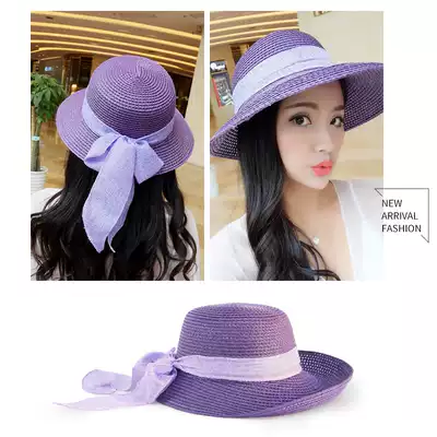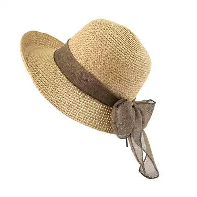 Beach sunscreen big along fisherman's hat face small Joker holiday Korean bow woven sunshade casual hat