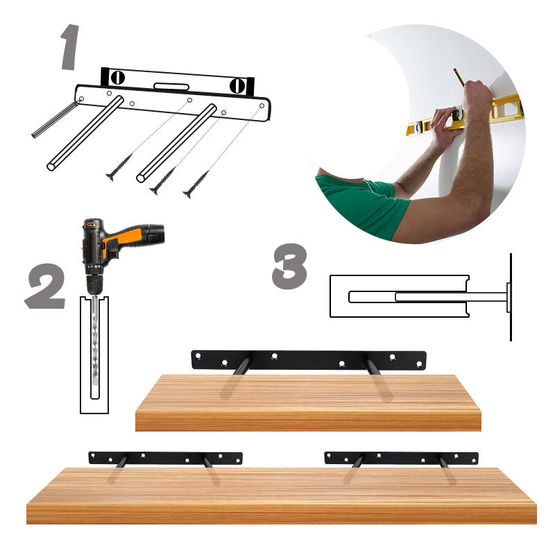 Furniture Hardware hidden layer plate double T black stealth dark mount partition bracket single layer partition bracket hardware