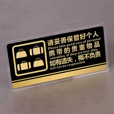 Please take good care of the valuables you carry If you lose them, you are not responsible for the acrylic sign No smoking, no smoking, sign, sign, warning custom sign