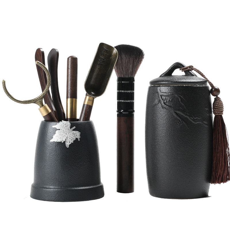 Black Pottery Maple Leaf Tin Tea Tube Black Pottery Maple Leaf Tin Tea Tube Tea Tin Black Pottery Maple Leaf Tin Tea Tube Tea Washing