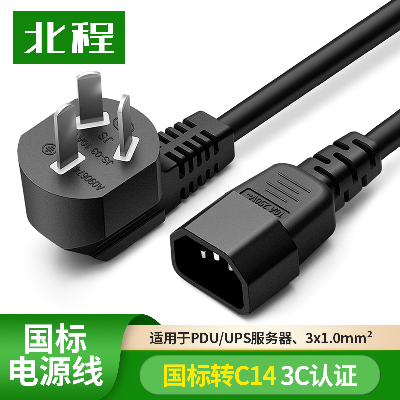 National standard three-plug C14 server power cord 1 square pure copper 10A plug to product word male wire 3C certification