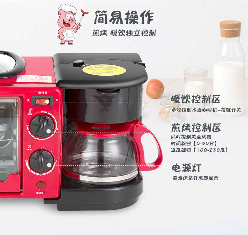 Li Jiaqi Breakfast Machine Tennis Red Solo Sandwich Machine Breakfast machine Multi-functional four-in-one cooking and frying fully automatic