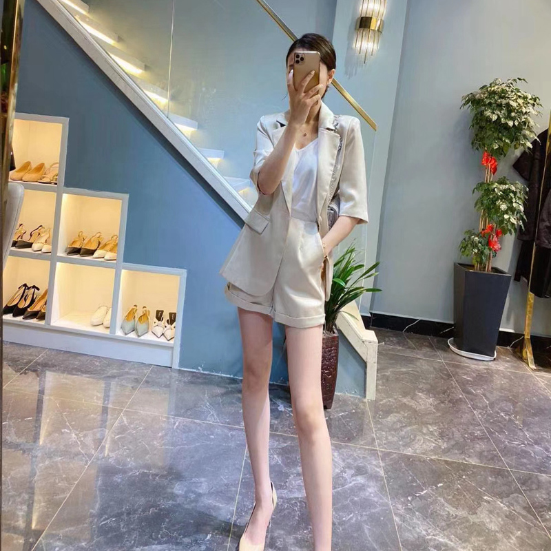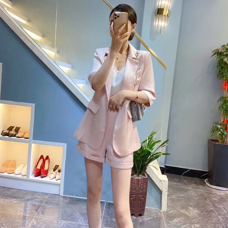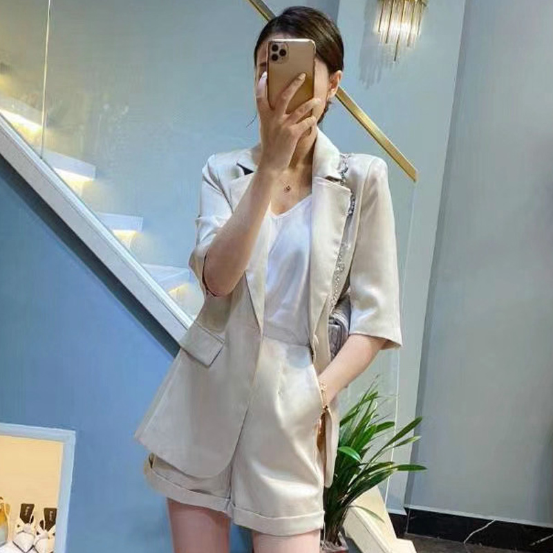 European Standing Suit Shorts Suit Woman Han Version Fashion High-end Work Clothes Temperament West Suit Two Sets Summer Thin