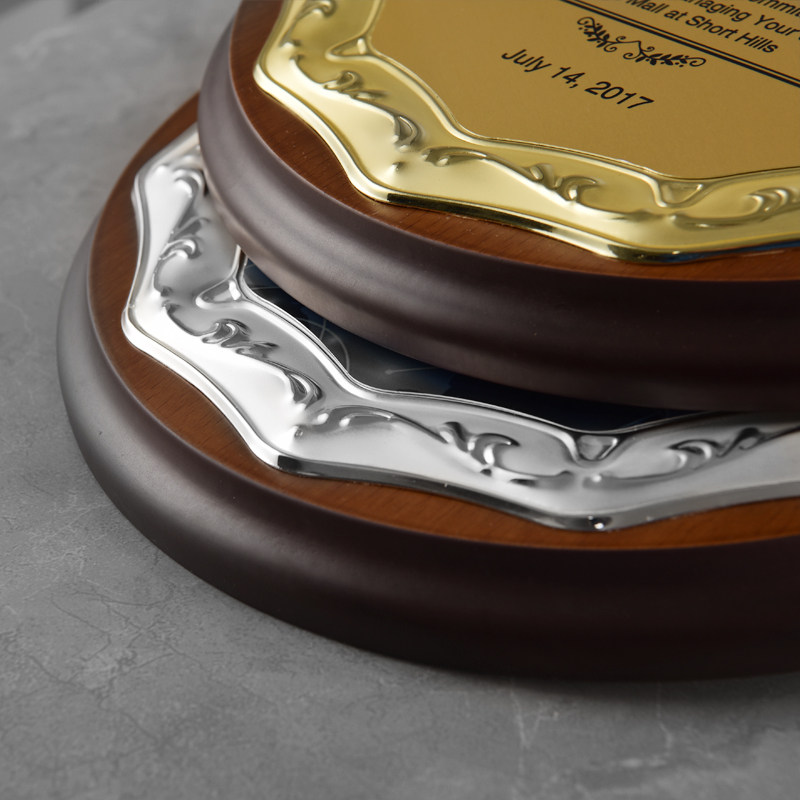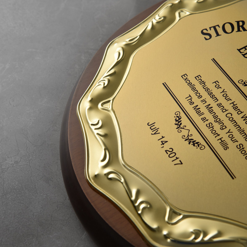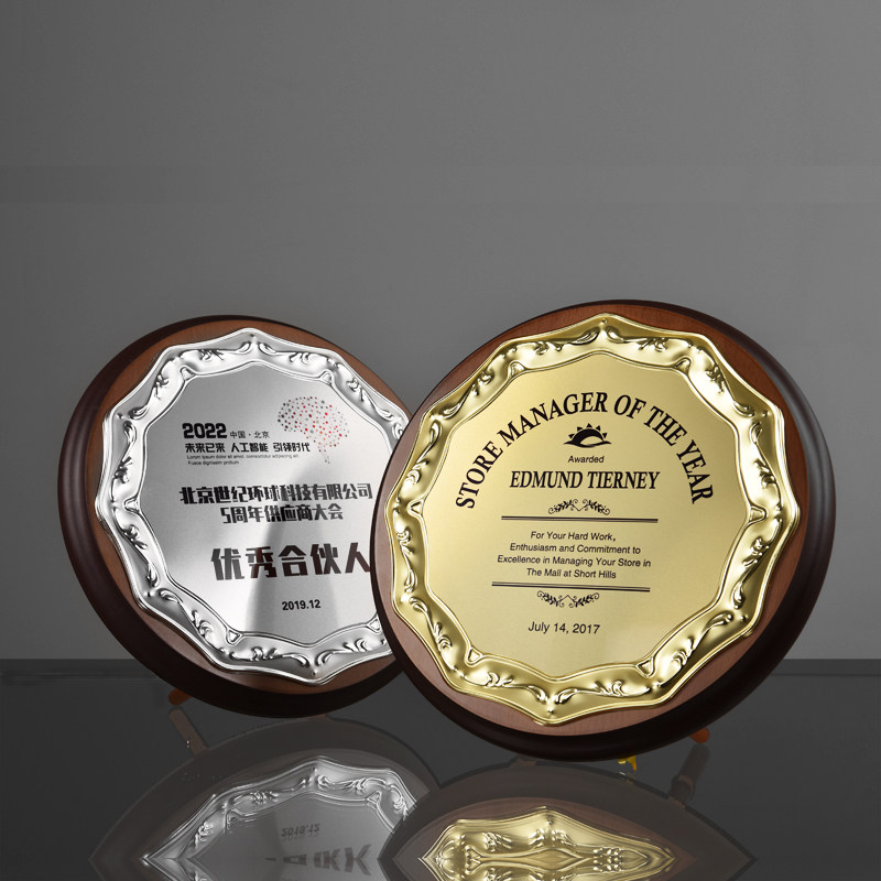Creative metal round wooden trust authorization card Wooden medal custom custom gold foil honor plaque certificate Mingjing square