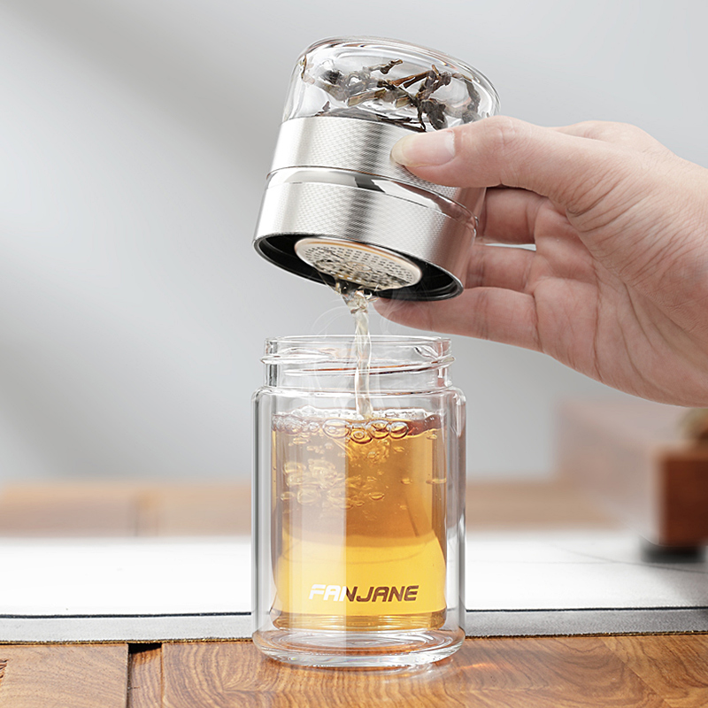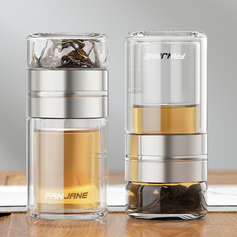 Complex Mini men and women Tea water separation tea cups Double glass thermal insulation transparent portable summer simple water glasses