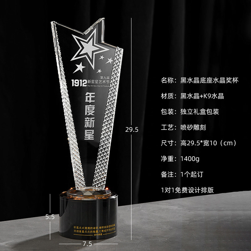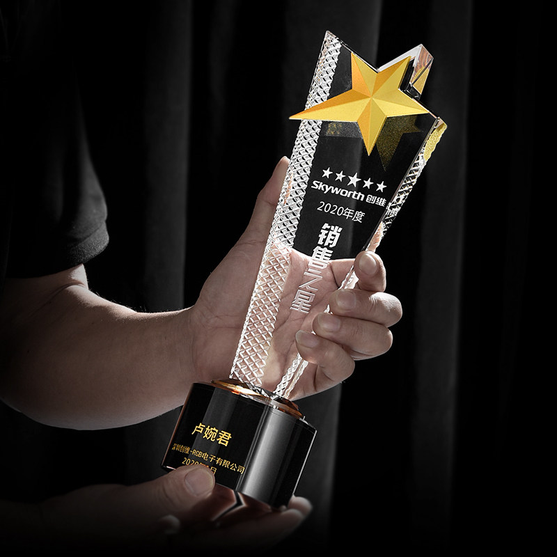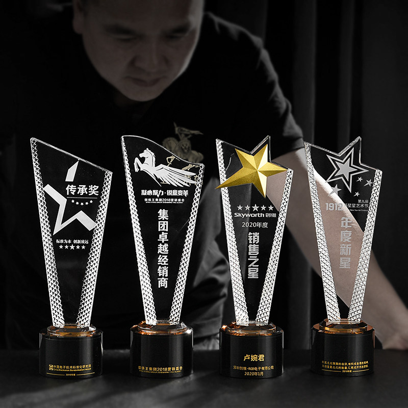 Creative Pentagram Crystal Trophy Custom Metal Medal Lettering Excellent Employee Event Competition Awards Souvenir