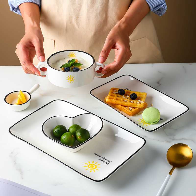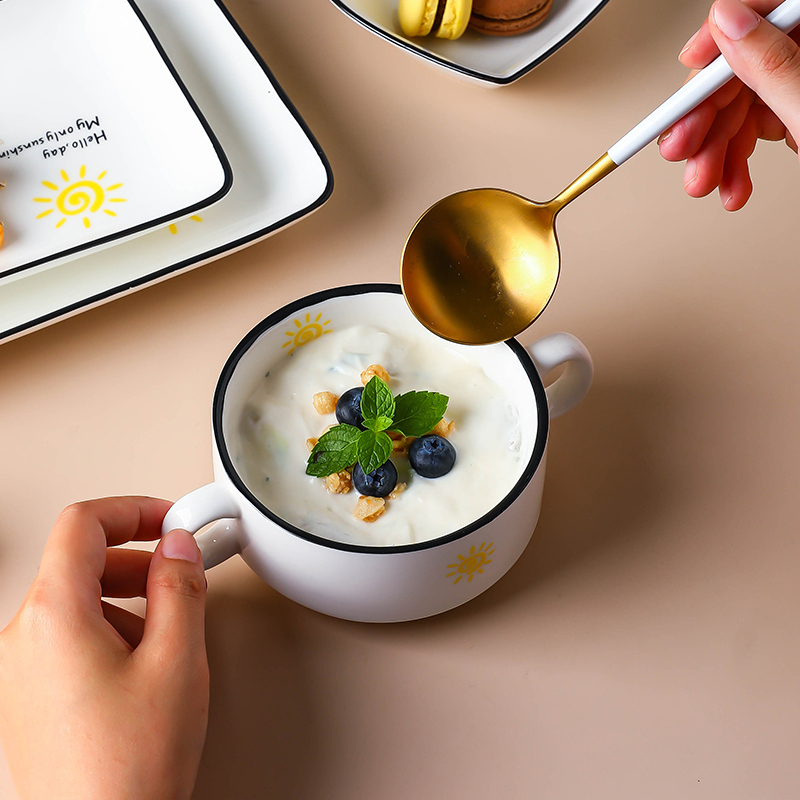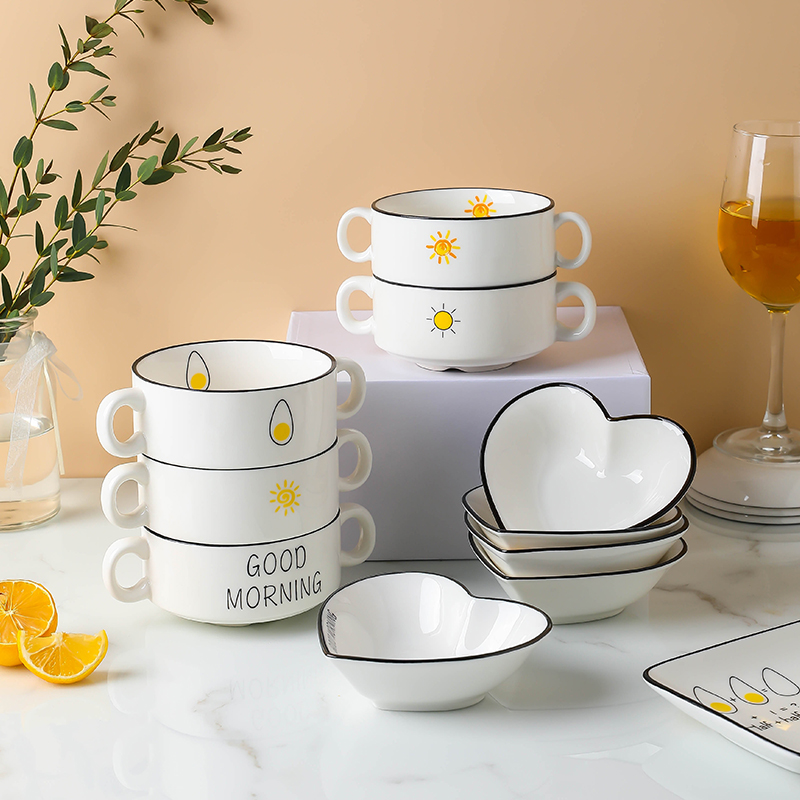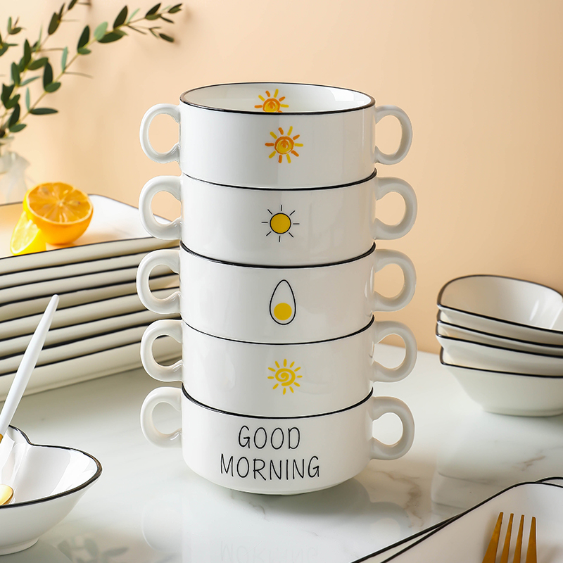 Nordic Brief Little Fresh ceramic Home Creative Twin Ear Bowls Oat Bowls Breakfast Bowls Children Rice Bowls Small Bowl Porridge Bowls