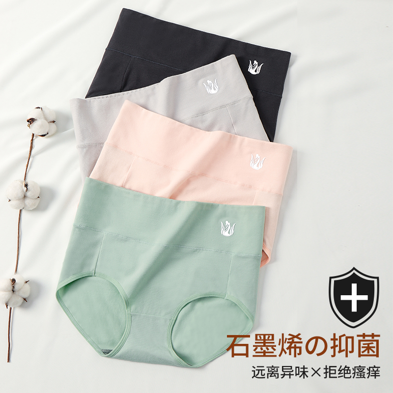 Graphene antibacterial high waist underwear female cotton breathable whole cotton indentation large-yard fat mm mid-waist triangle shorts