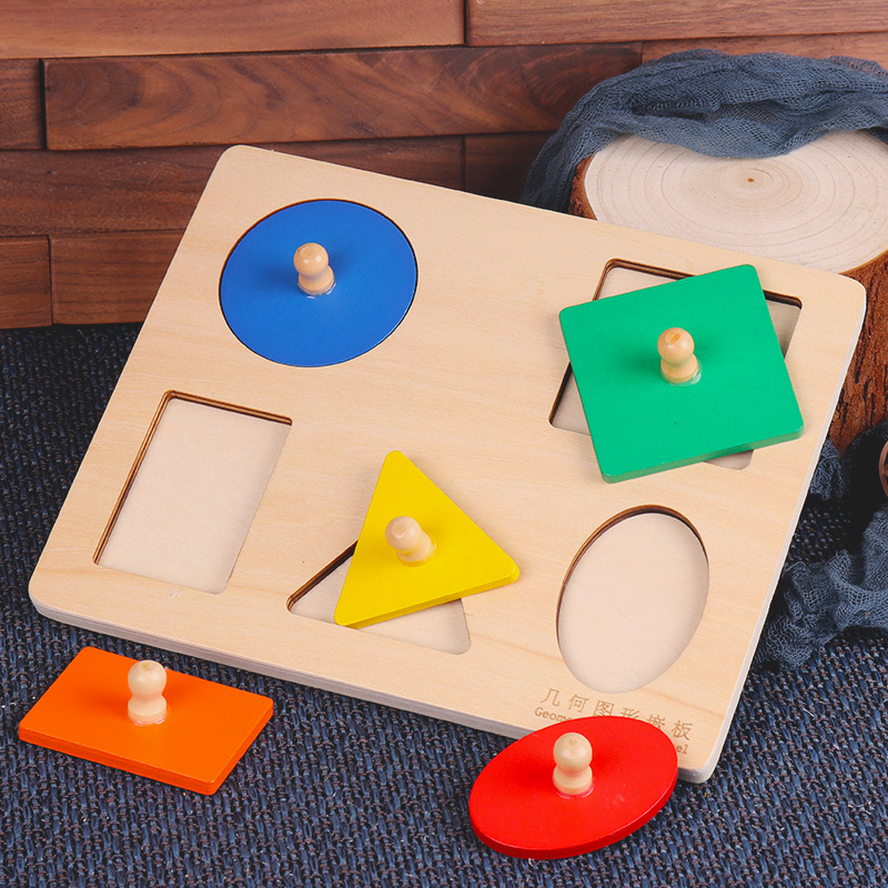 Montessori early education educational toys 2 baby one year old 3 shape cognitive graphics paired hand-grabbing mosaic board puzzle teaching aids